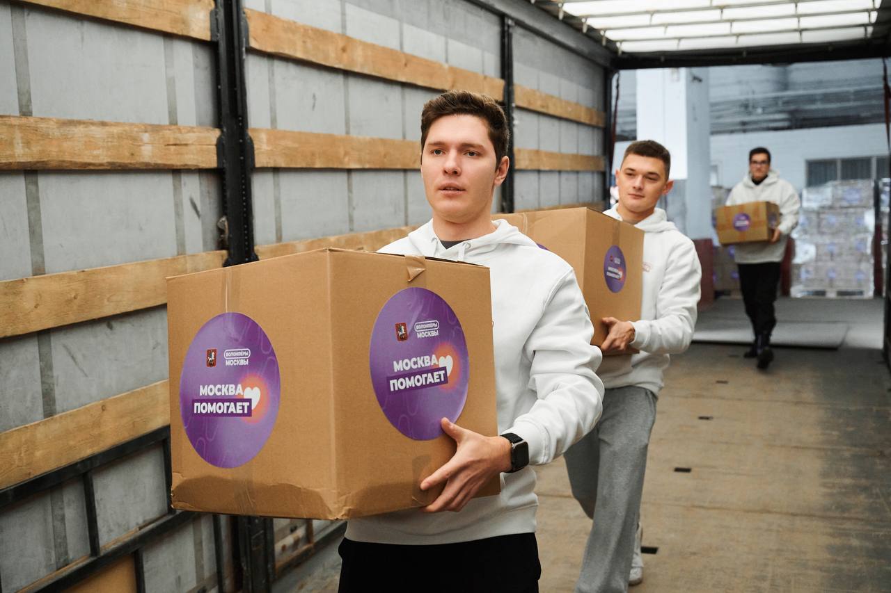 Груз был собран в штабах «Москва помогает», а также в «Домиках добра» на фестивальных площадках проекта «Лето в Москве».